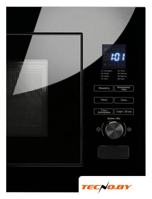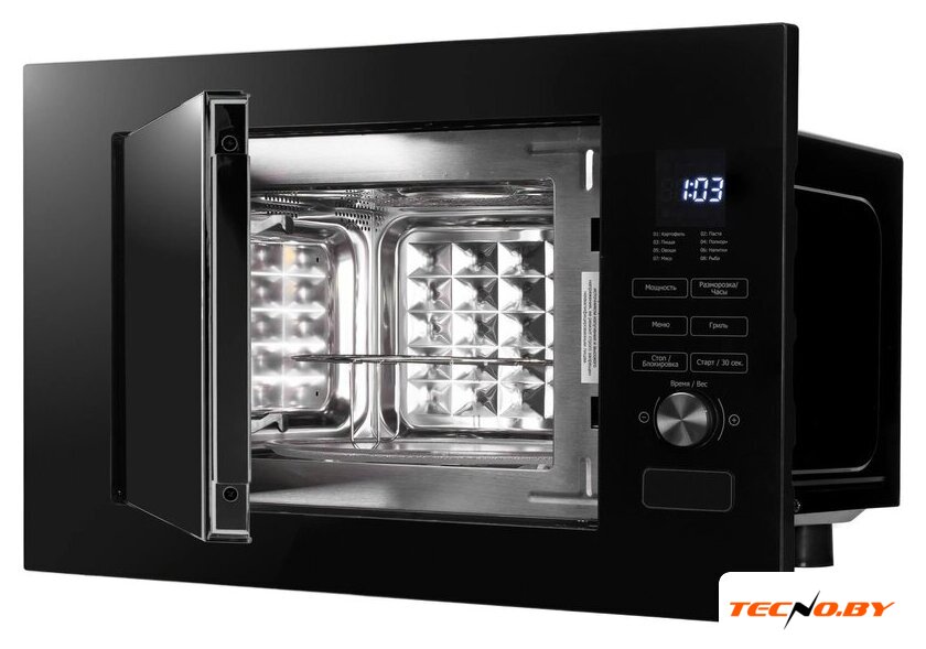 встраиваемая, микроволны и гриль, объем 25 л, выходная мощность микроволн 900 Вт, управление электронное, автоприготовление, авторазмораживание, цвет черный