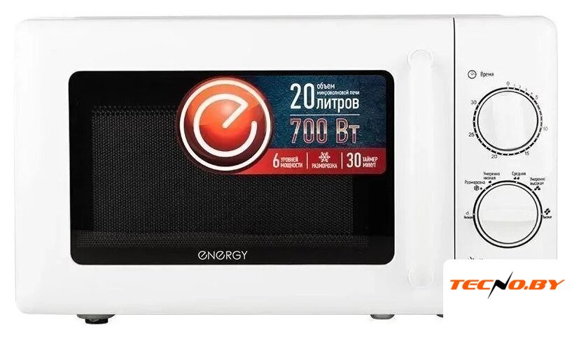 отдельностоящая, микроволны (соло), объем 20 л, выходная мощность микроволн 700 Вт, управление механическое, цвет белый