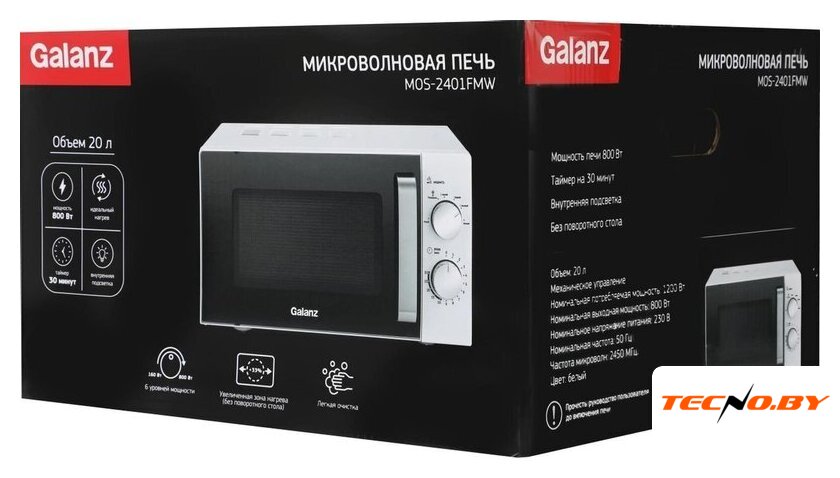 отдельностоящая, микроволны (соло), объем 20 л, выходная мощность микроволн 700 Вт, управление механическое, цвет черный