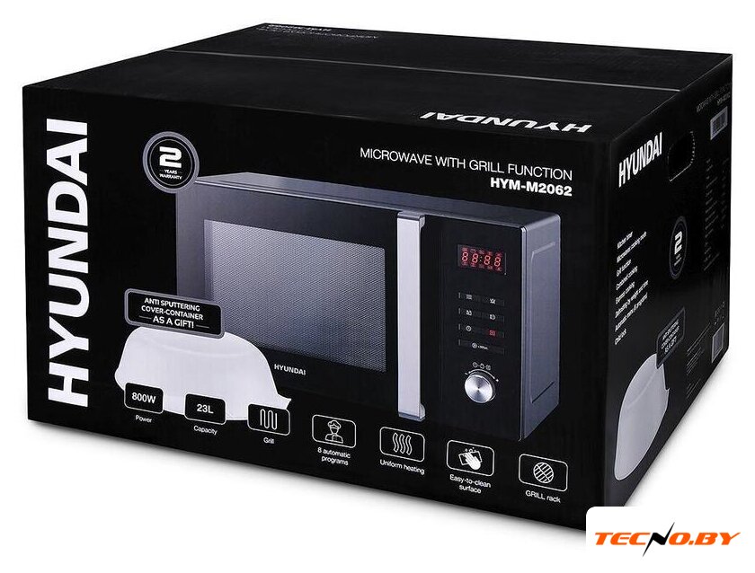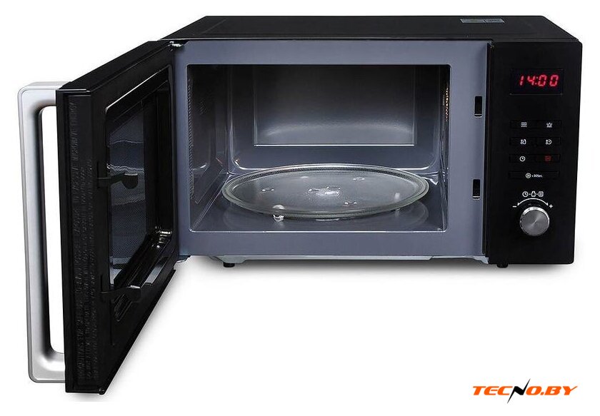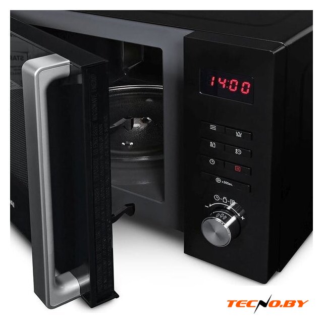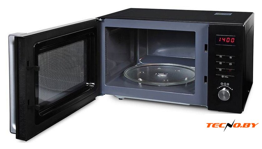 отдельностоящая, микроволны (соло), объем 23 л, выходная мощность микроволн 800 Вт, управление электронное, автоприготовление, авторазмораживание, цвет нержавеющая сталь/черный