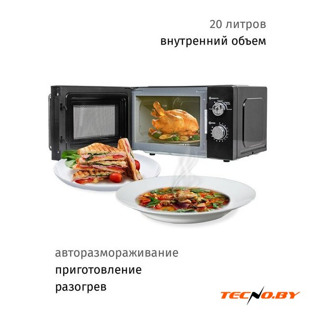 отдельностоящая, микроволны (соло), объем 20 л, выходная мощность микроволн 700 Вт, управление сенсорное, автоприготовление, авторазмораживание, цвет черный
