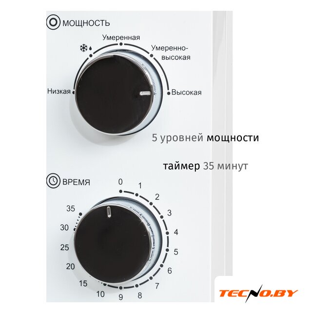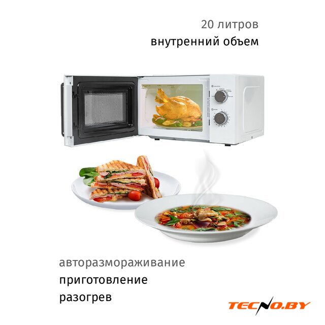 отдельностоящая, микроволны (соло), объем 20 л, выходная мощность микроволн 700 Вт, управление механическое, цвет белый