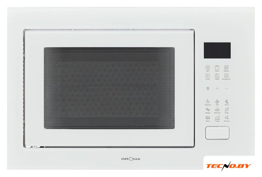 встраиваемая, микроволны и гриль, объем 25 л, выходная мощность микроволн 900 Вт, управление электронное, автоприготовление, авторазмораживание, цвет белый