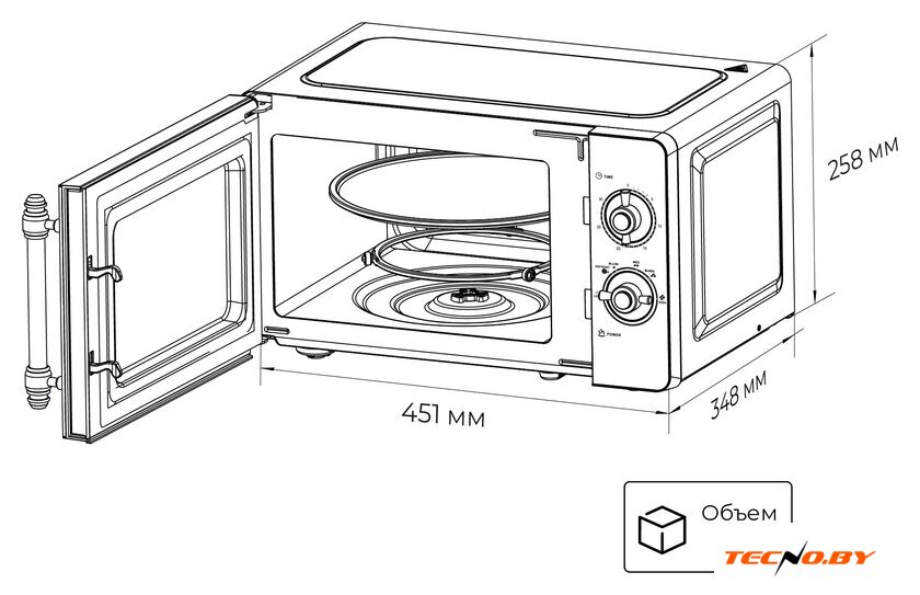 отдельностоящая, микроволны и гриль, объем 23 л, выходная мощность микроволн 800 Вт, управление электронное, автоприготовление, авторазмораживание, цвет черный