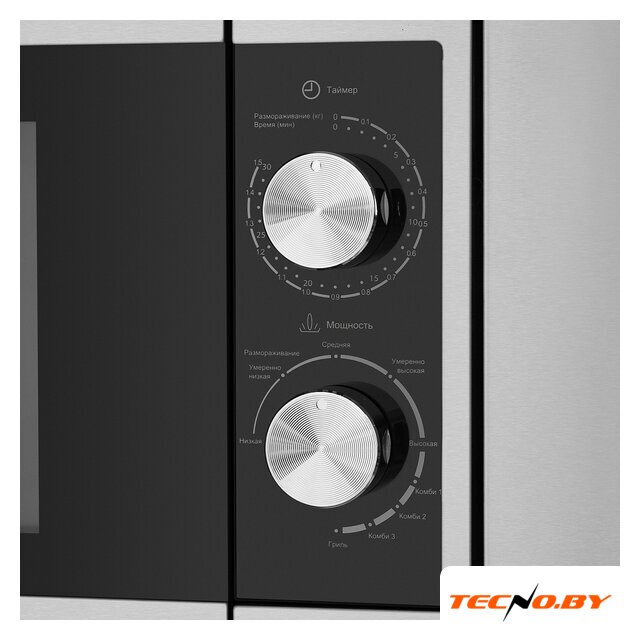 встраиваемая, микроволны (соло), объем 20 л, выходная мощность микроволн 800 Вт, управление механическое, автоприготовление, авторазмораживание, цвет черный