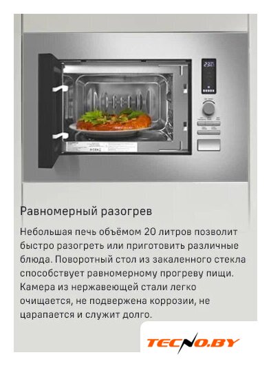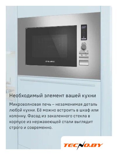 встраиваемая, микроволны и гриль, объем 20 л, управление электронное, автоприготовление, авторазмораживание, цвет нержавеющая сталь