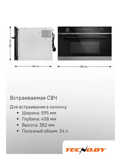 встраиваемая, микроволны и гриль, объем 25 л, выходная мощность микроволн 850 Вт, управление сенсорное, автоприготовление, авторазмораживание, цвет черный