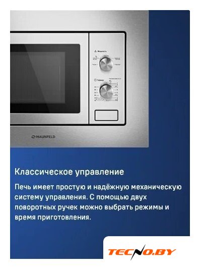 встраиваемая, микроволны (соло), объем 20 л, выходная мощность микроволн 800 Вт, управление механическое, цвет черный