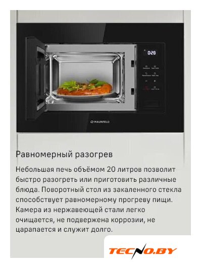 встраиваемая, микроволны и гриль, объем 20 л, управление электронное, автоприготовление, авторазмораживание, цвет черный
