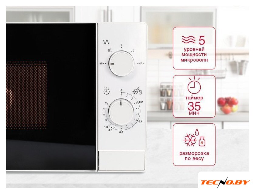 отдельностоящая, микроволны (соло), объем 23 л, выходная мощность микроволн 700 Вт, управление механическое, автоприготовление, авторазмораживание, цвет серебристый