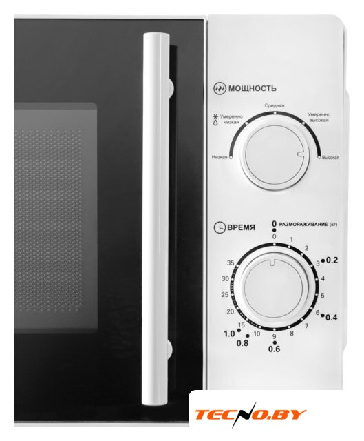 отдельностоящая, микроволны (соло), объем 20 л, выходная мощность микроволн 700 Вт, управление механическое, цвет белый