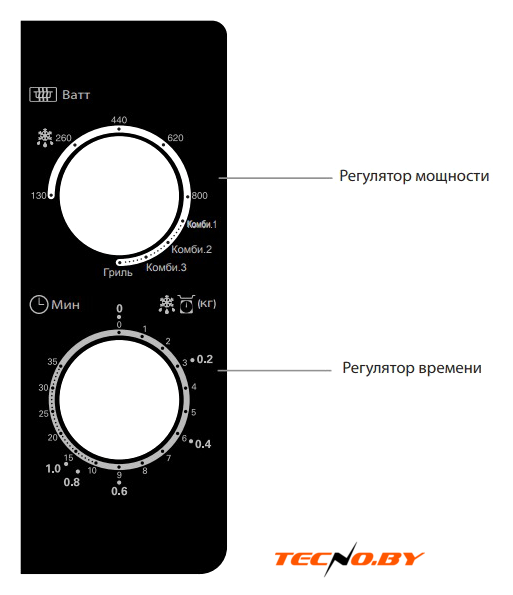 отдельностоящая, микроволны (соло), объем 23 л, выходная мощность микроволн 900 Вт, управление механическое, цвет черный