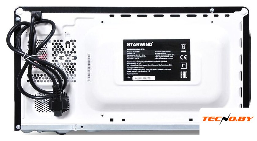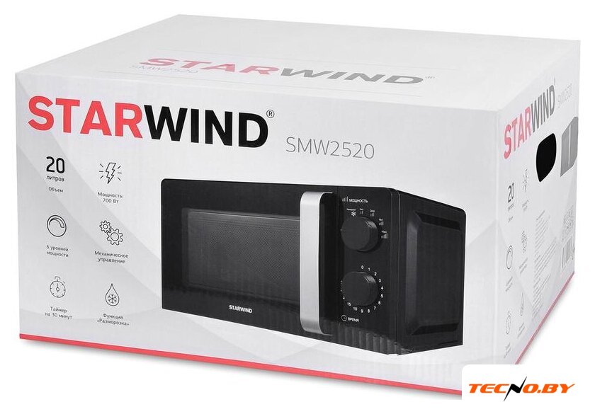 отдельностоящая, микроволны (соло), объем 20 л, выходная мощность микроволн 700 Вт, управление механическое, цвет черный