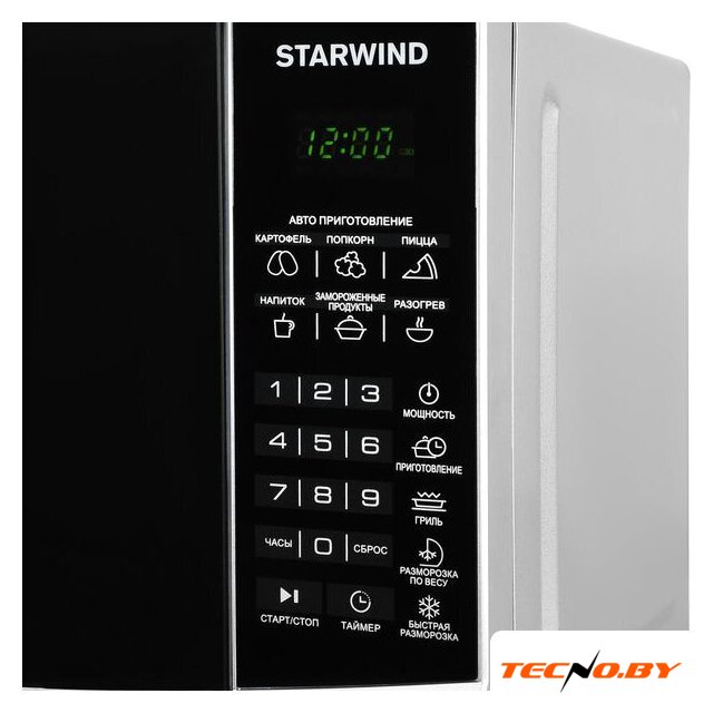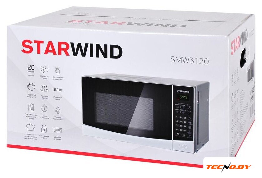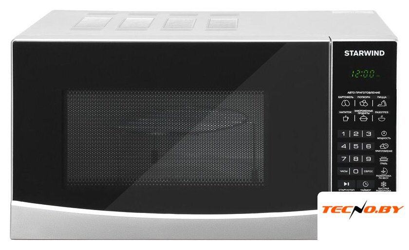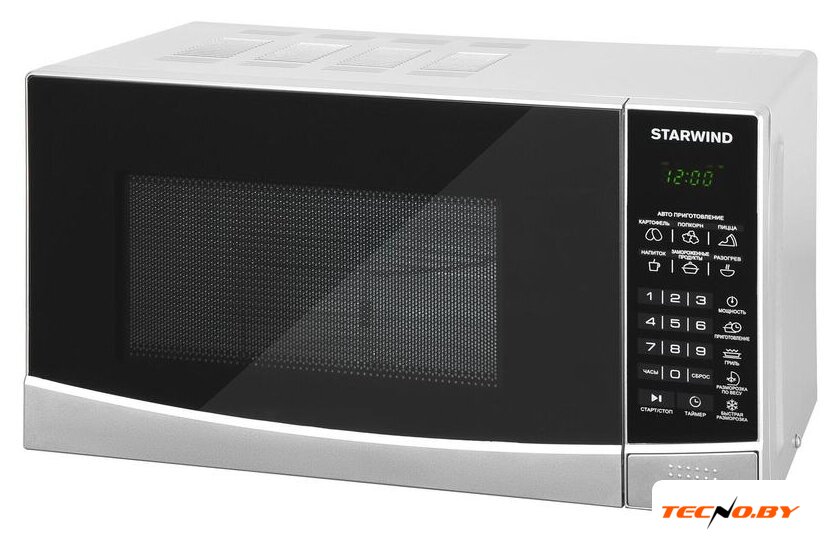 отдельностоящая, микроволны (соло), объем 20 л, выходная мощность микроволн 800 Вт, управление электронное, автоприготовление, авторазмораживание, цвет белый