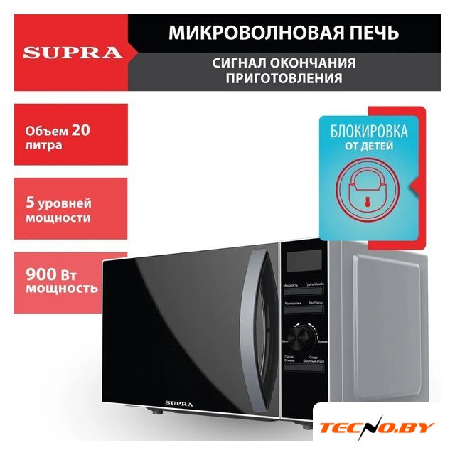 отдельностоящая, микроволны (соло), объем 20 л, выходная мощность микроволн 800 Вт, управление механическое, цвет черный