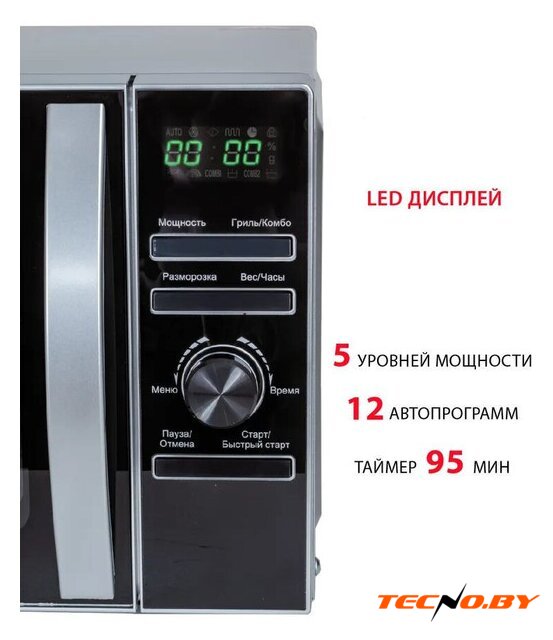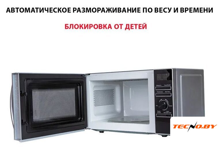 отдельностоящая, микроволны (соло), объем 20 л, выходная мощность микроволн 700 Вт, управление электронное, автоприготовление, авторазмораживание, цвет серебристый