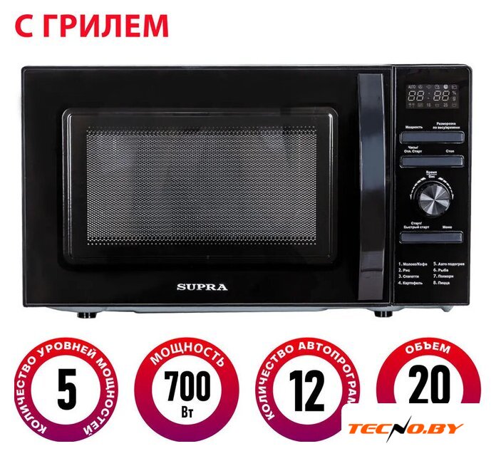 отдельностоящая, микроволны (соло), объем 20 л, выходная мощность микроволн 700 Вт, управление механическое, цвет черный