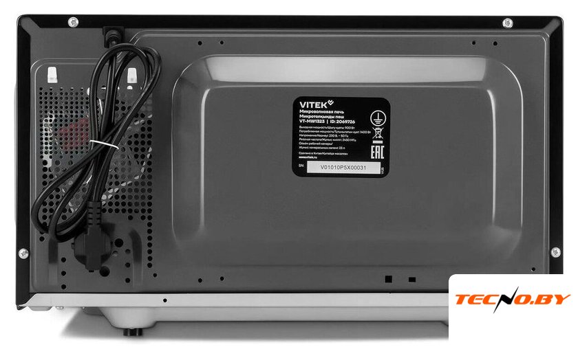 отдельностоящая, микроволны (соло), объем 23 л, выходная мощность микроволн 800 Вт, управление механическое, цвет черный