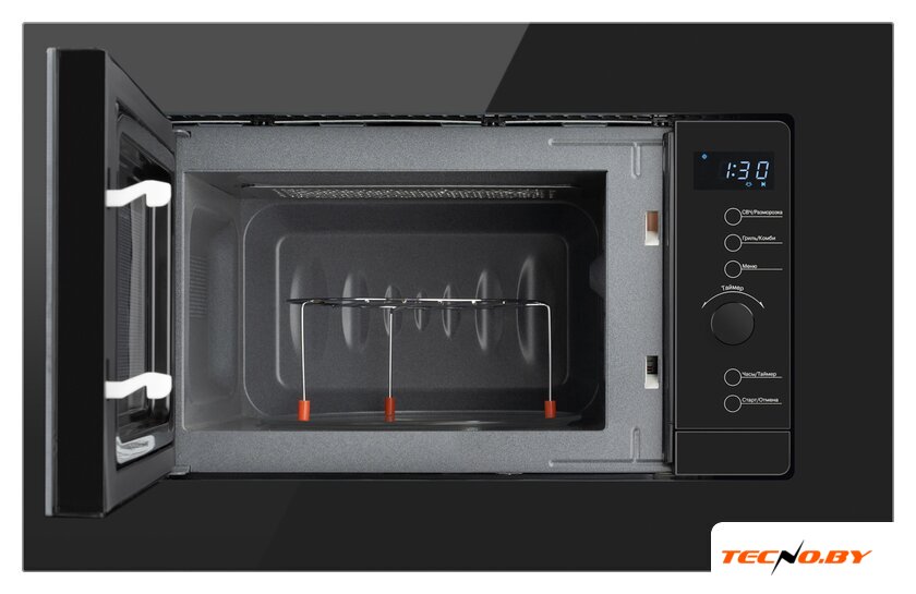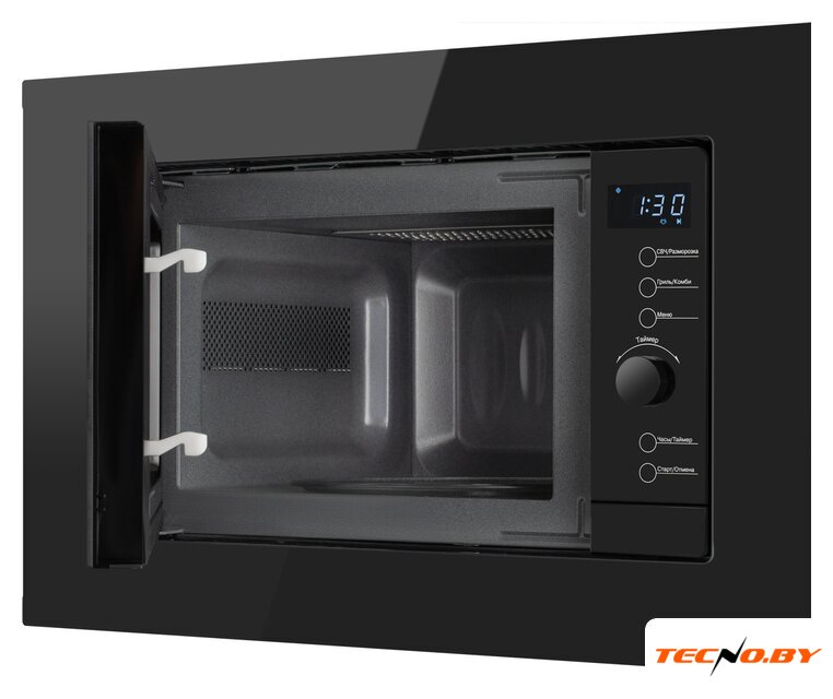 встраиваемая, микроволны и гриль, объем 20 л, выходная мощность микроволн 800 Вт, управление электронное, автоприготовление, авторазмораживание, цвет черный