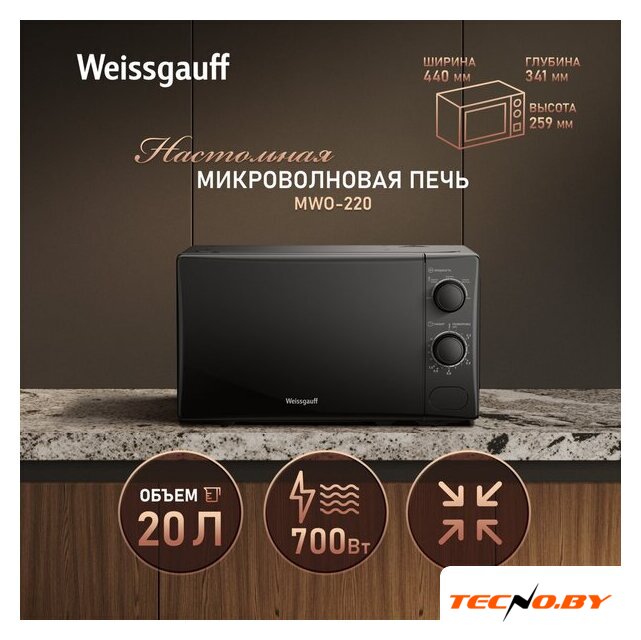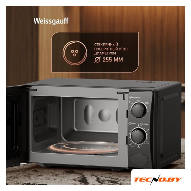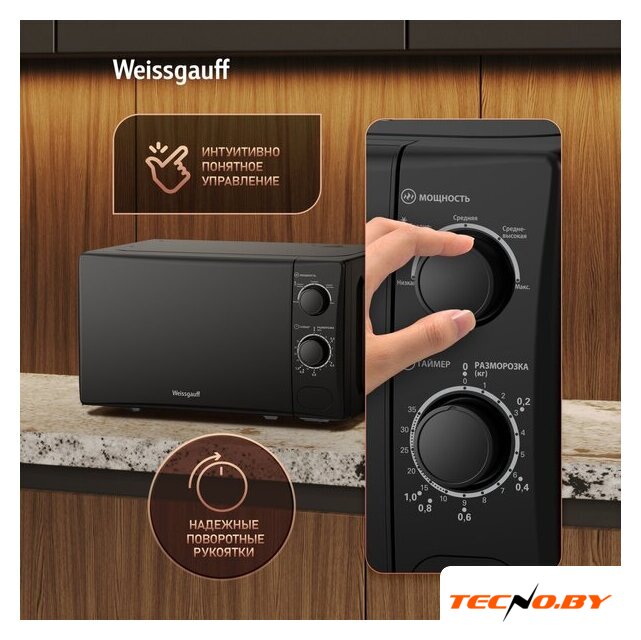 отдельностоящая, микроволны (соло), объем 20 л, выходная мощность микроволн 700 Вт, управление механическое, цвет черный
