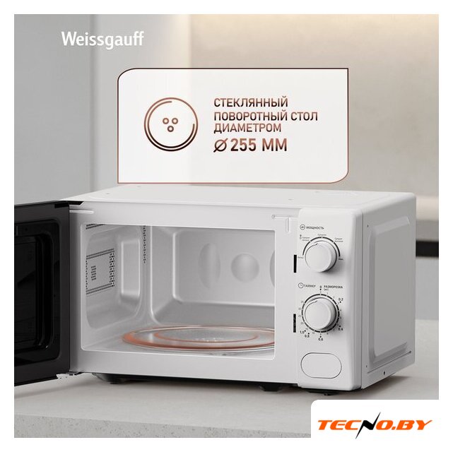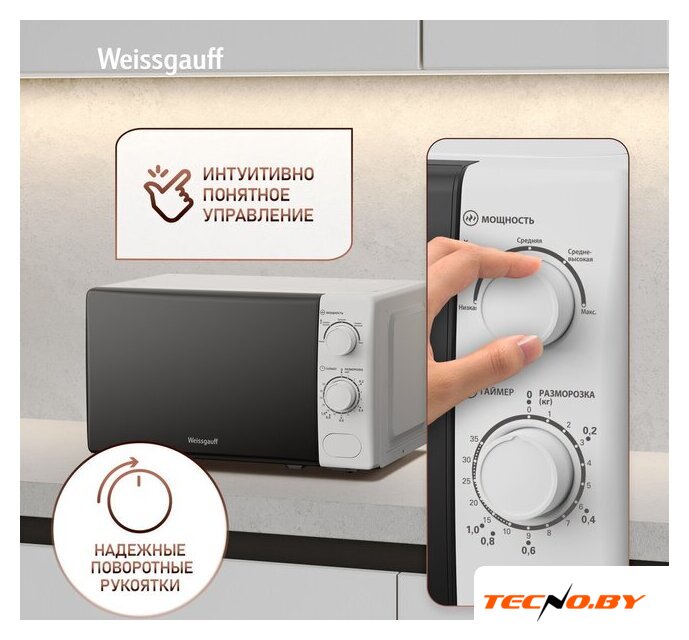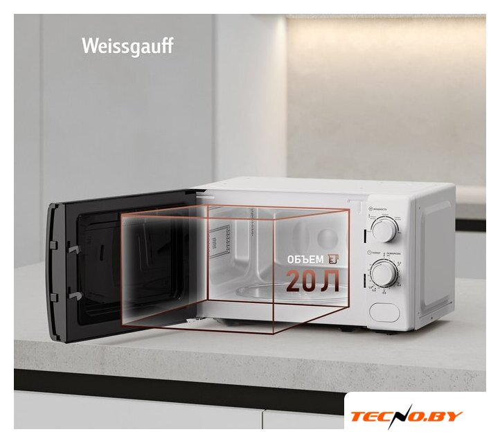 отдельностоящая, микроволны (соло), объем 20 л, выходная мощность микроволн 700 Вт, управление механическое, цвет белый