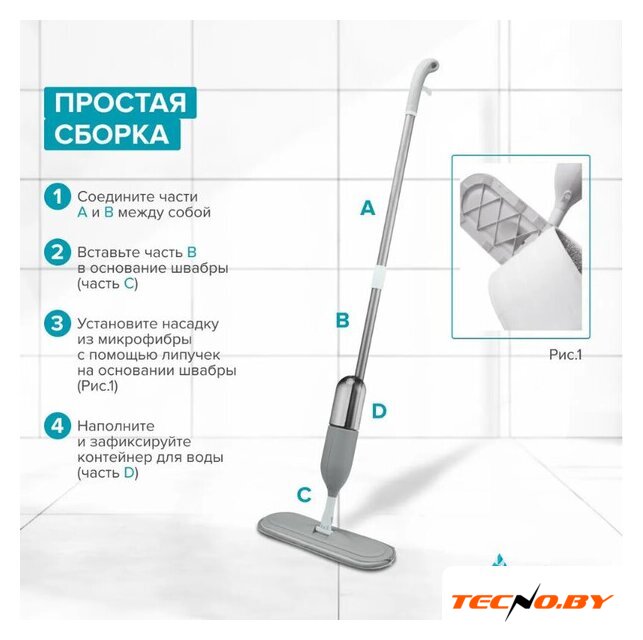 материал ручки - пластик/металл, материал тряпки - микрофибра, телескопическая ручка