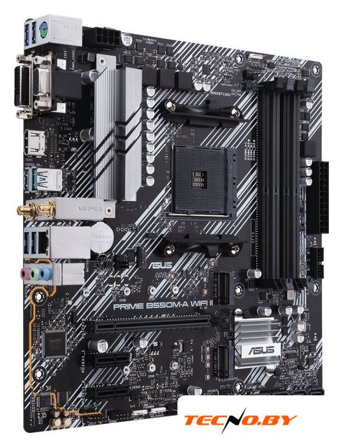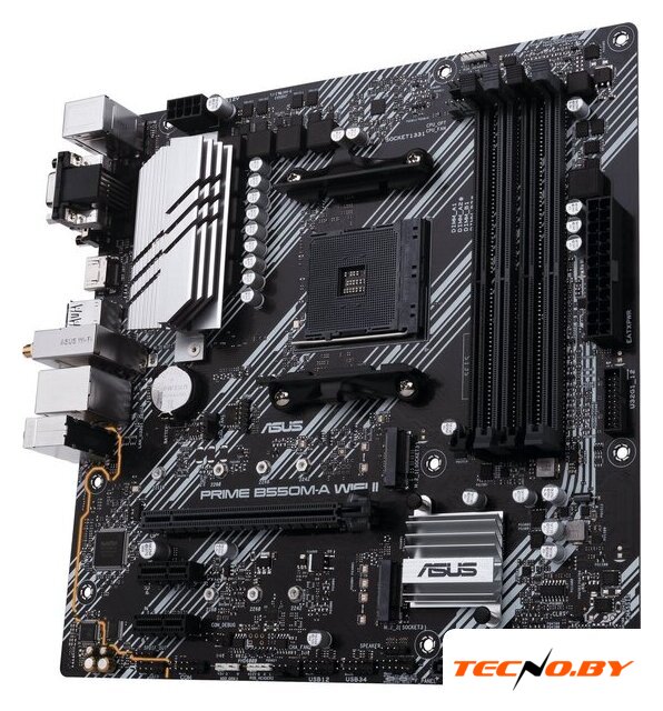 mATX, сокет AMD AM4, чипсет AMD B550, память 4xDDR4, слоты: 2xPCIe x16, 1xPCIe x1, 2xM.2