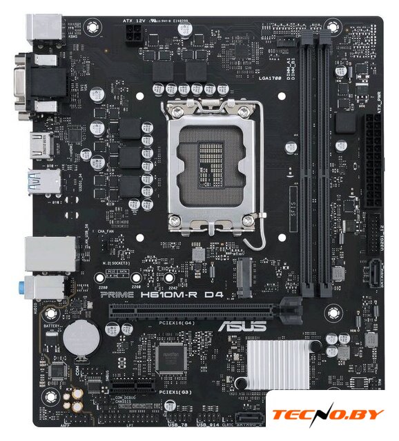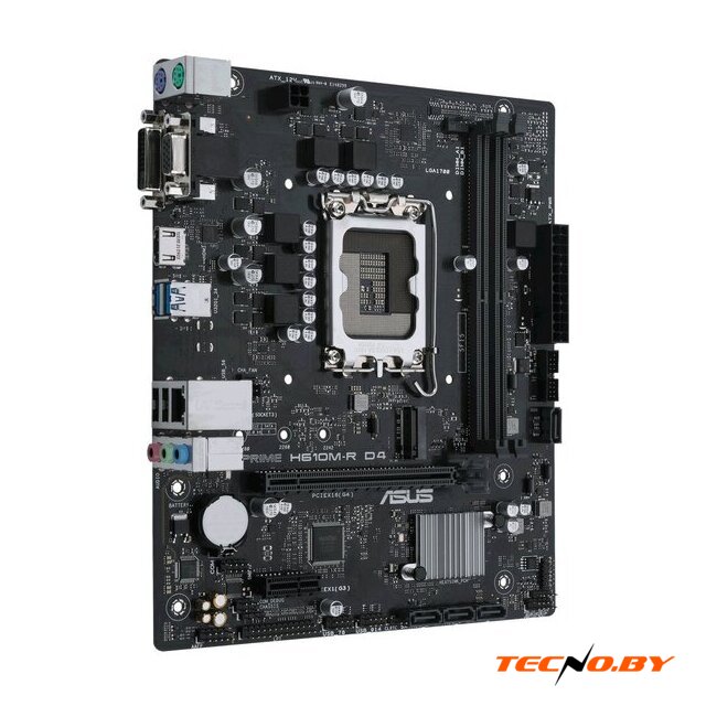 mATX, сокет Intel LGA1700, чипсет Intel H610, память 2xDDR5 до 5600 МГц, слоты: 1xPCIe x16, 1xPCIe x1, 1xM.2