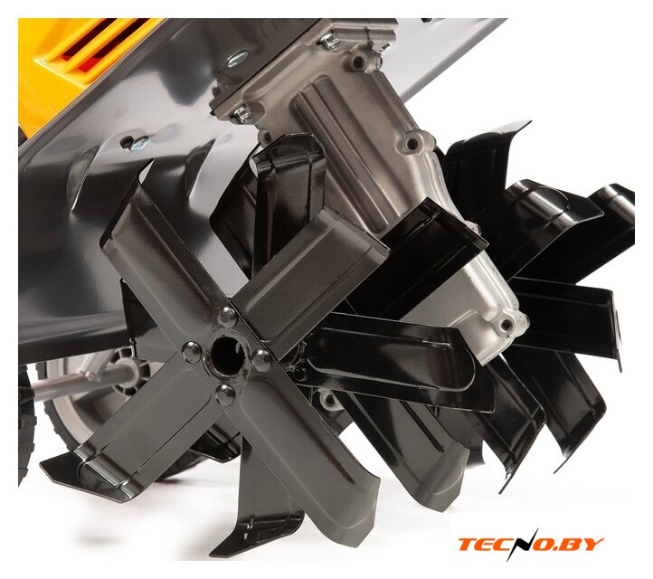 Количество оборотов фрез достигает 360 об/мин, что позволяет обрабатывать почву в кратчайшие сроки. Диаметр фрез составляет 23 см, что обеспечивает максимальное проникновение в почву и отличные результаты вспашки. Несмотря на основную функцию культиватора, установка навесного оборудования не предусмотрена, что упрощает конструкцию и уменьшает вес устройства.