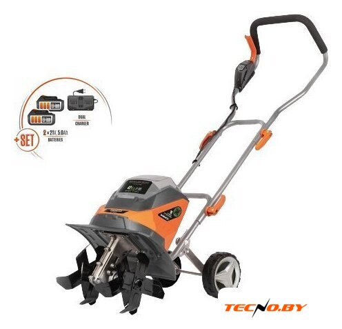 | Комплект поставки | - Культиватор 1 шт- Рукоятка верхняя 1 шт- Рукоятка нижняя 1 шт- Транспортировочные колеса 1 шт- Фреза в сборе 2 шт- Крепежные элементы 1 шт- Крепеж для кабеля 1 шт- Аккумулятор 2 шт- Зарядное устройство 1 шт- Руководство по эксплуатации 1 шт |