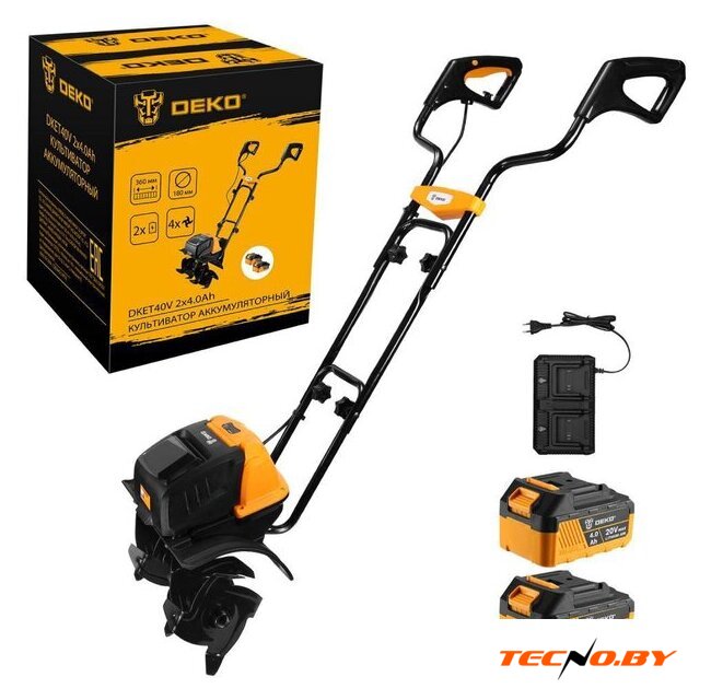 Весь базовый комплект Deko DKET40V включает в себя аккумуляторный культиватор, два аккумулятора, зарядное устройство, руководство по эксплуатации и даже транспортировочную коробку. Благодаря такой комплектации, вы получите все необходимое для быстрого начала работы и поддержания устройства в отличном состоянии. 🚜