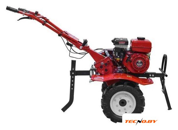 С объемом двигателя 208 см³ и емкостью топливного бака 3.6 литра, мотоблок предлагает эффективную и продолжительную работу без необходимости частых дозаправок. Сочетание трех передач (две вперед и одна назад) обеспечивает гибкость в управлении. Ручной запуск двигателя добавляет традиционной надежности.