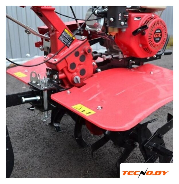 Удобный регулируемый по высоте руль делает эксплуатацию мотокультиватора комфортной для любого пользователя, независимо от его роста. Аппарат имеет компактные размеры: длина 77.6 см, ширина 47.6 см и высота 70.2 см. Весит он 80 кг, что придает ему необходимую устойчивость на разных типах почвы. Поскольку в конструкции не предусмотрены надувные колеса, это уменьшает риск пробоев и необходимость регулярного их обслуживания.