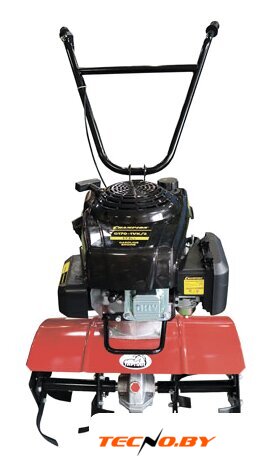 Оснащен надежным четырехтактным двигателем с рабочим объемом 196 см³, мотокультиватор имеет емкость топливного бака 2.6 л. Для пуска двигателя предусмотрены ручной старт и электростартер, что упрощает процесс эксплуатации.