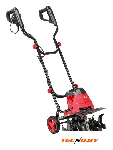 Мотокультиватор представлен в стильном черно-красном дизайне, подчеркивающем его современность и надежность. Диаметр фрез составляет 22 см, а колеса имеют диаметр 15 см, обеспечивая устойчивость и равномерное распределение нагрузки. Ведущая ось отвечает за надежную работу и долговечность устройства.