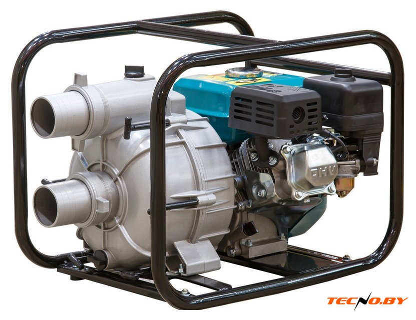 для грязной воды, бензиновый двигатель Lifan LF168F-1, мощность 4.7 кВт, производительность 1500 л/мин, высота подъема 26 м, бак 3.6 л, патрубки 80/80 мм