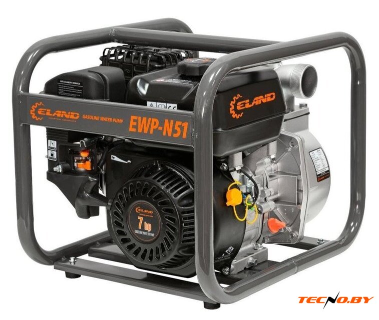 для слабозагрязненной воды, бензиновый двигатель, мощность 5.2 кВт, производительность 500 л/мин, высота подъема 30 м, бак 3.6 л, патрубки 50/50 мм