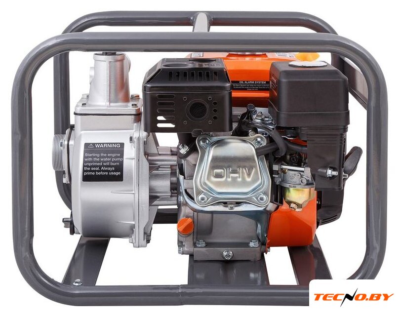для слабозагрязненной воды, бензиновый двигатель, мощность 5.2 кВт, производительность 500 л/мин, высота подъема 30 м, бак 3.6 л, патрубки 50/50 мм