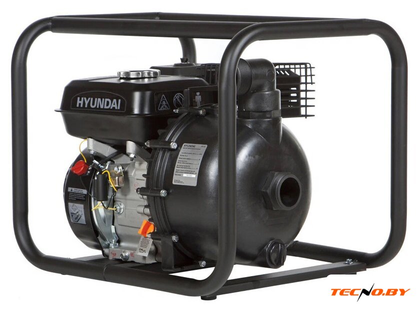 для слабозагрязненной воды, бензиновый двигатель Hyundai IC210, мощность 5.2 кВт, производительность 1000 л/мин, высота подъема 28 м, бак 3.6 л, патрубки 80/80 мм