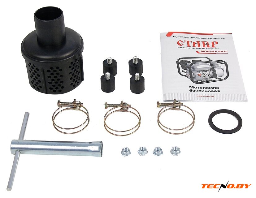 для слабозагрязненной воды, бензиновый двигатель 170F, мощность 5.2 кВт, производительность 1000 л/мин, высота подъема 30 м, бак 3.6 л, патрубки 80/80 мм