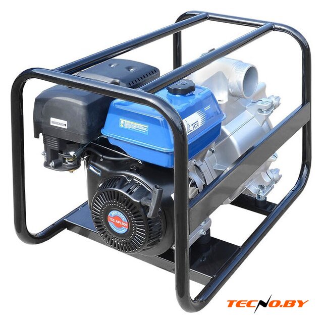 для грязной воды, бензиновый двигатель, мощность 9.5 кВт, производительность 1800 л/мин, высота подъема 26 м, бак 6.5 л, патрубки 100/100 мм