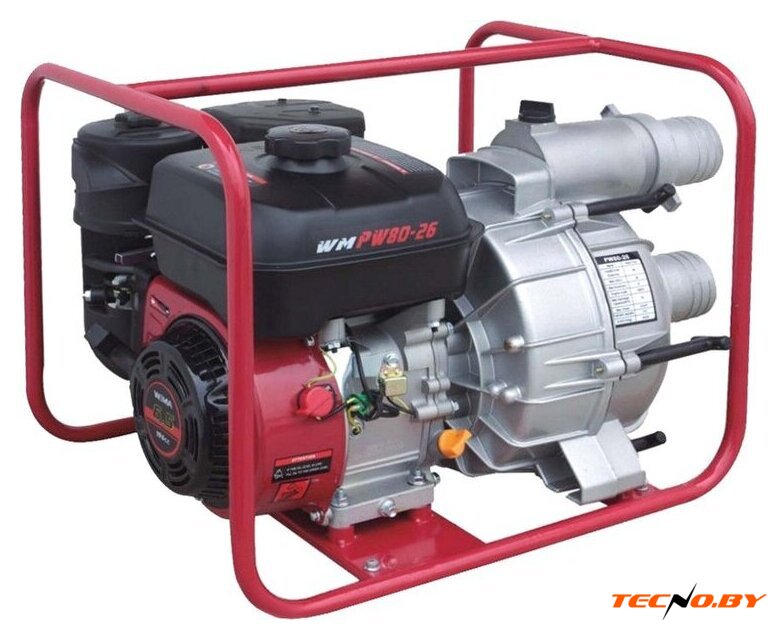 для грязной воды, бензиновый двигатель, мощность 4.2 кВт, производительность 1100 л/ч, высота подъема 26 м, патрубки 80/80 мм