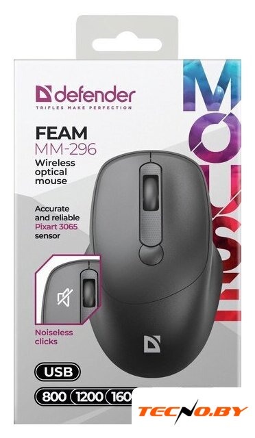 полноразмерная мышь для ПК, радио, сенсор оптический 1600 dpi, 6 кнопок, колесо с нажатием, цвет черный
