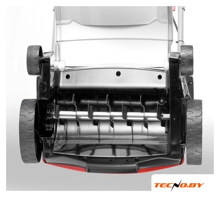 Устройство оснащено централизованной системой регулировки высоты скашивания с пятью уровнями, что позволяет идеально настроить работу под особенности вашего газона. Это делает его универсальным инструментом, подходящим для различных типов травяных покрытий и условий работы.