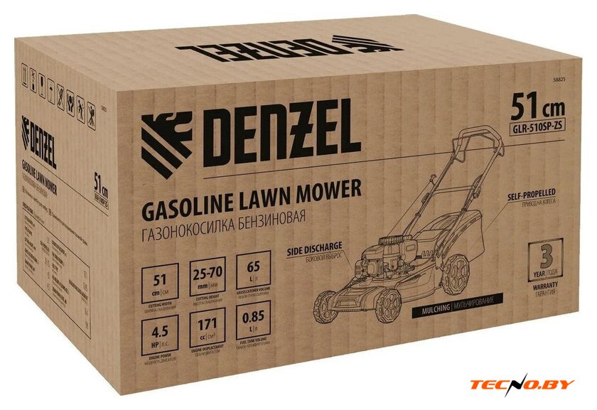 Газонокосилка Denzel GLR-510SP-ZS оснащена штуцером для промывки деки, что делает процесс обслуживания быстрым и простым. Рабочий объем четырехтактного двигателя составляет 171 см³, а емкость топливного бака — 0.85 л, что обеспечивает долгую и непрерывную работу без частых дозаправок. Низкий уровень шума (98 дБ) делает ее использование комфортным как для вас, так и для окружающих.