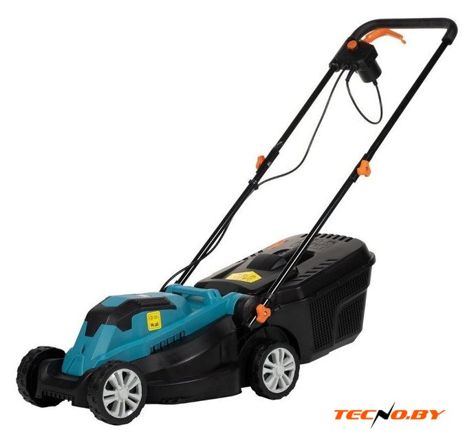 | Комплектация | - Газонокосилка — 1 шт.- Рукоятка с блоком переключателей — 1 шт.- Травосборник – 1 шт.- Колёса - 4 шт.- Монтажный комплект - 1 шт.- Руководство по эксплуатации с гарантийным талоном — 1 шт.- Коробка |