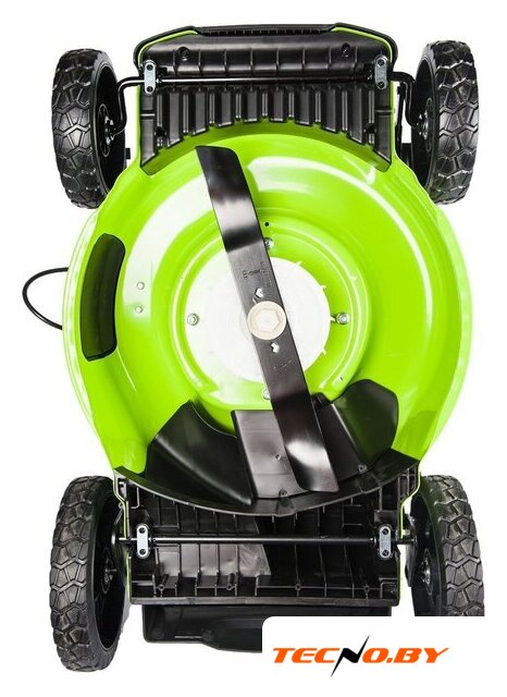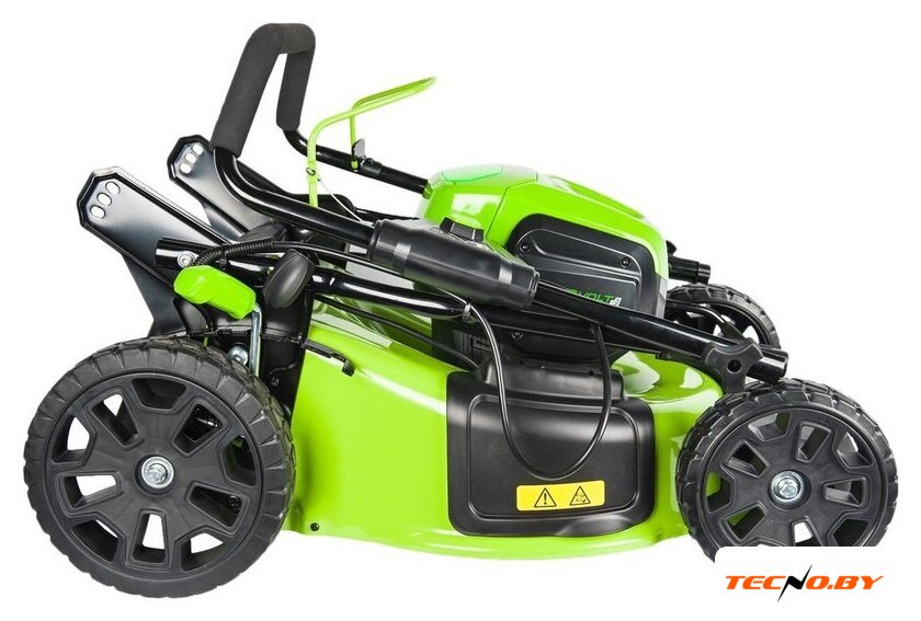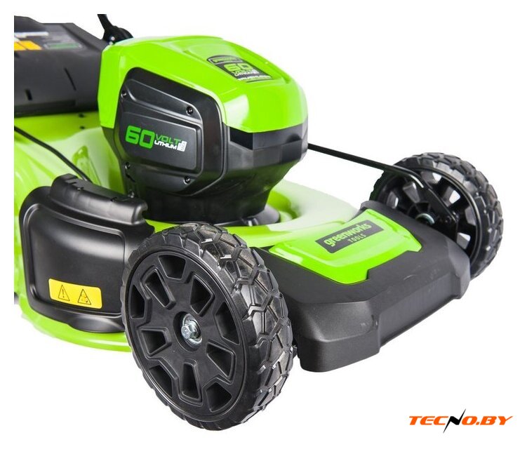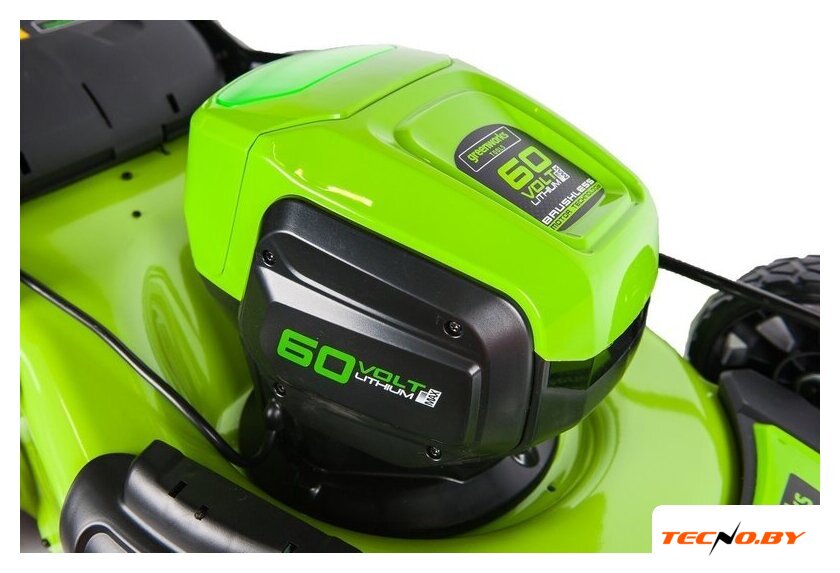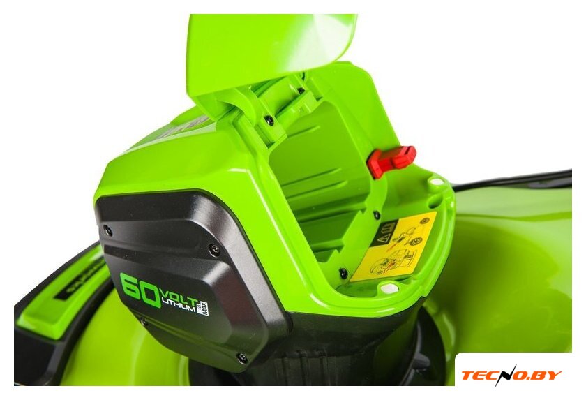 Модель работает на мощном 60 В Li-ion аккумуляторе (не включен в комплект), предоставляя вам свободу перемещения без ограничений сетевого кабеля. Это позволяет легко и удобно маневрировать среди клумб и других садовых элементов. Не самоходная, но легкая в управлении благодаря четырем пластиковым колесам, вес которой составляет всего 24.5 кг.