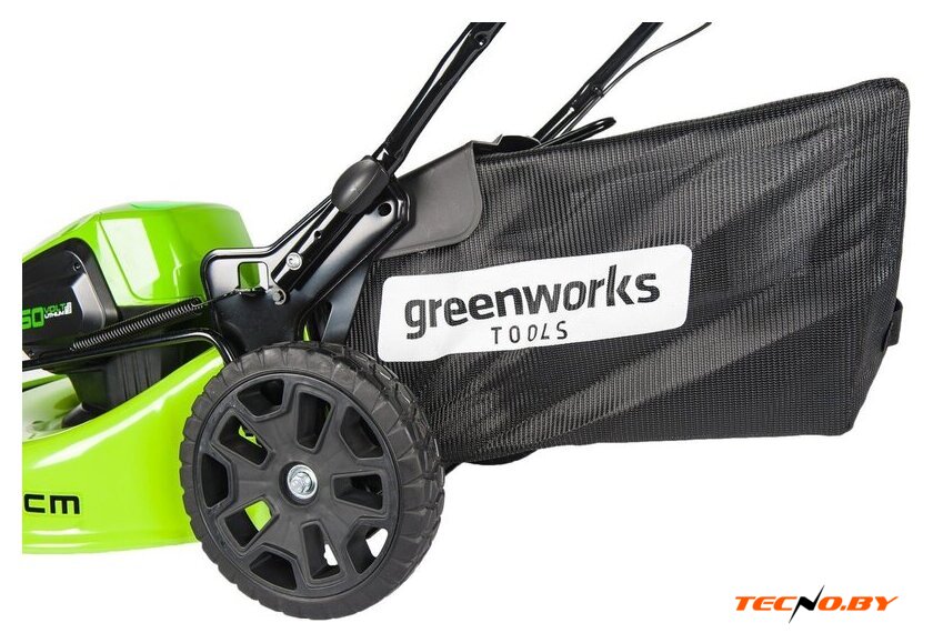 Greenworks GD60LM46HP предлагает несколько решений для сбора травы: боковой выброс, сбор в мягкий травосборник объемом 55 литров и мульчирование. В комплект входит заглушка для мульчирования, что позволяет не только косить, но и обогащать почву питательными веществами. Мешок-травосборник легко снимается и очищается, что добавляет комфорта в использовании.