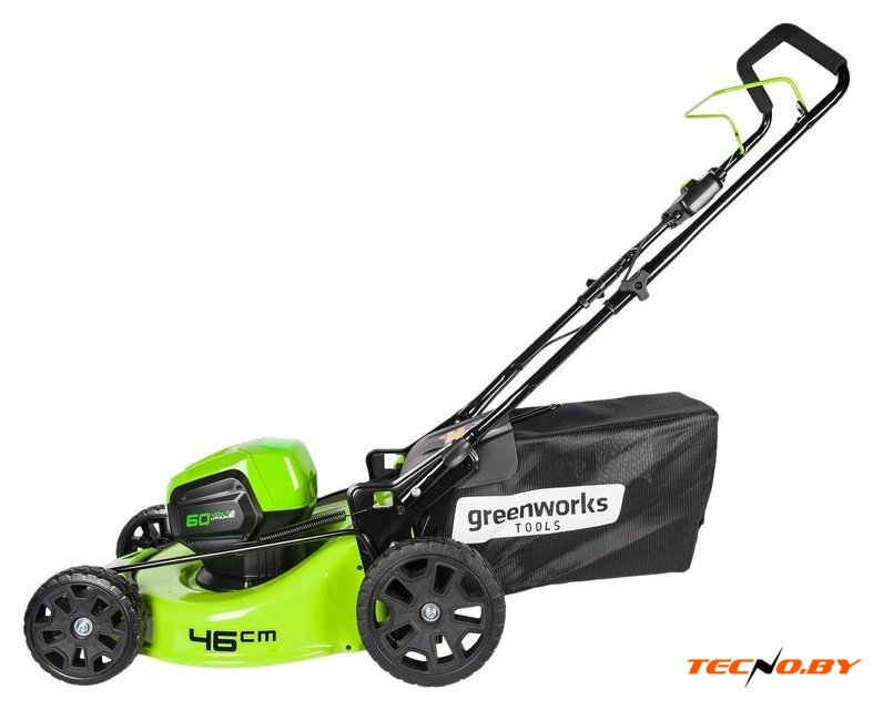 Greenworks GD60LM46HP предлагается без аккумулятора, в комплект входят заглушка для мульчирования, вставка для бокового выброса травы и мешок-травосборник. На борту также руководства по эксплуатации и гарантийный талон, что гарантирует поддержку и удовлетворение от использования. Это надежный и удобный инструмент для любого садовода, ценящего многофункциональность и высокую производительность.