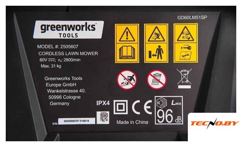 | Комплектация | Газонокосилка самоходная аккумуляторная 60V GREENWORKS GD60LM51SP - 1 шт.Заглушка для мульчирования - 1 шт.Травосборник - мешок - 1 шт.Руководство по эксплуатацииУпаковка |